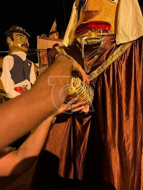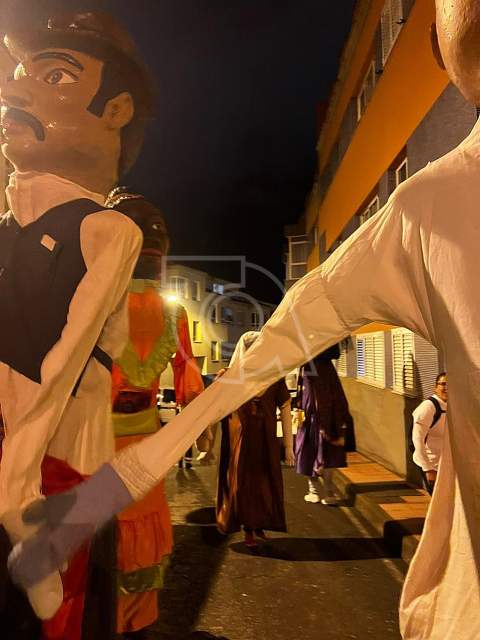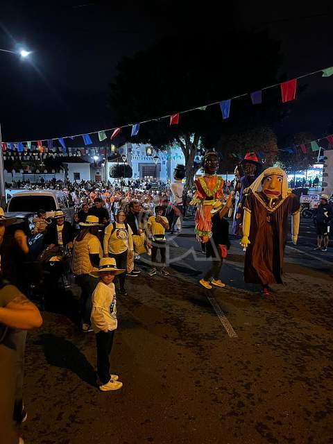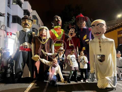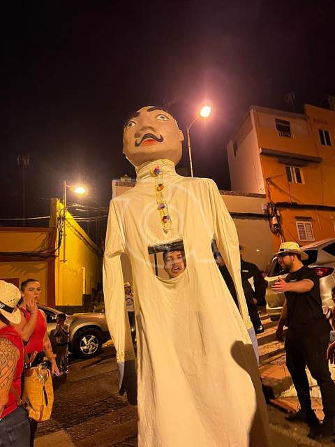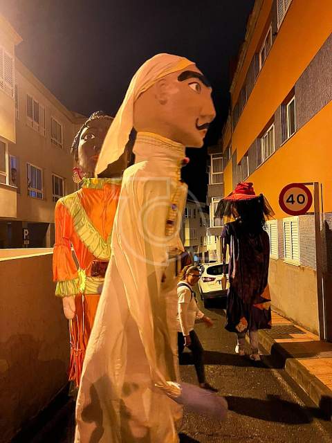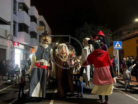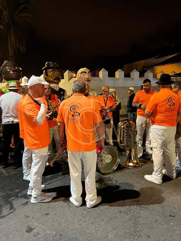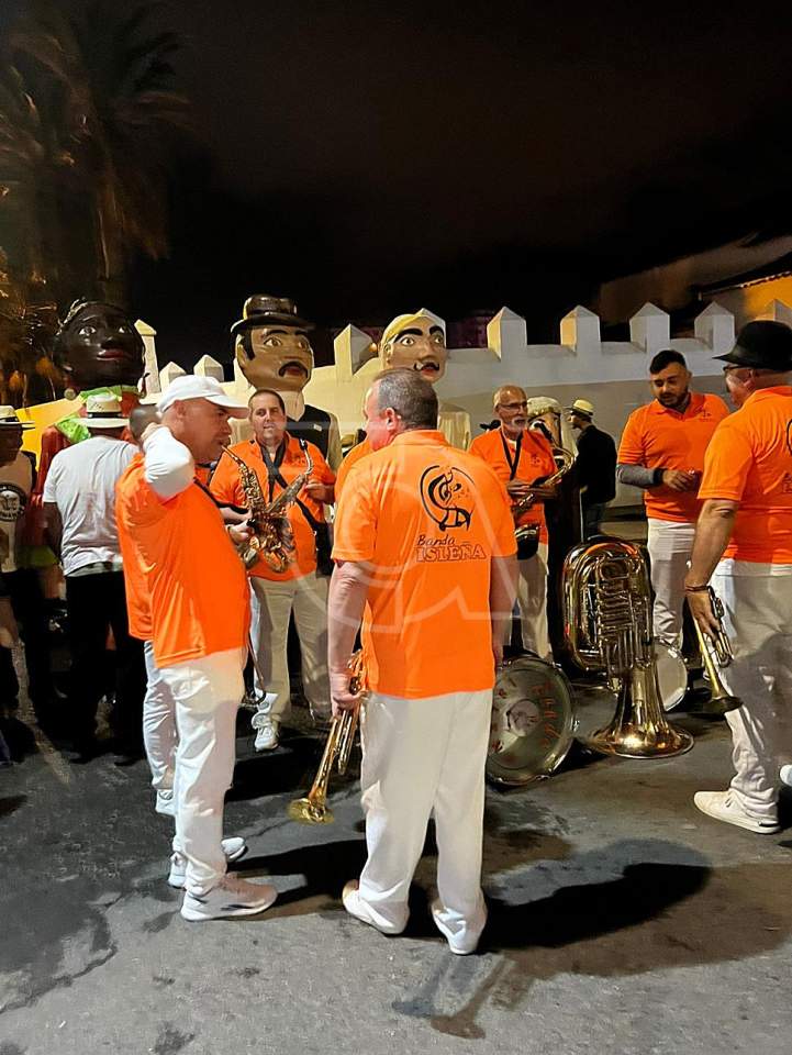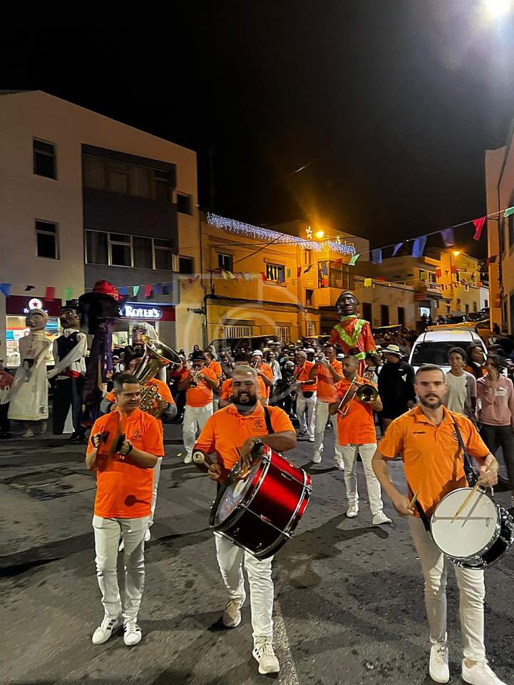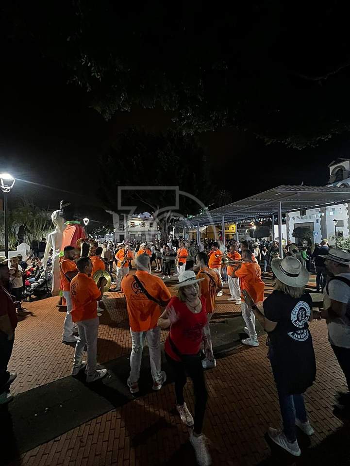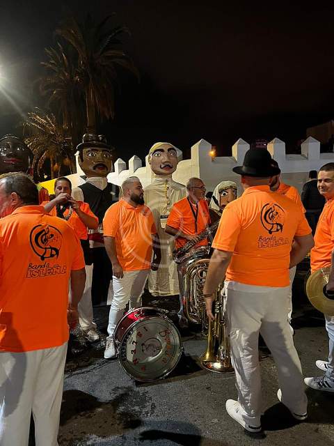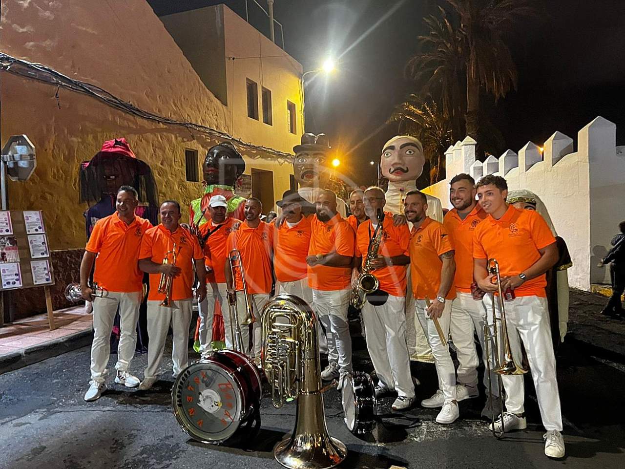 La comitiva festiva encabezada por cinco papagüevos y la Banda Isleña calentó motores pasadas las 20.00 horas en las inmediaciones de la plaza pública y de la sede del Patronato de Fiestas organizador de estos fastos.