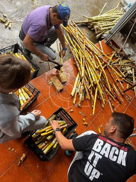 Los trozos de 30-40 centímetros fueron saboreados por los cientos de personas de Jinámar y de Telde de todas las edades que no quisieron perderse la degustación de la caña dulce.