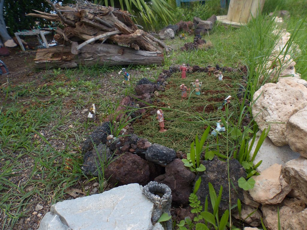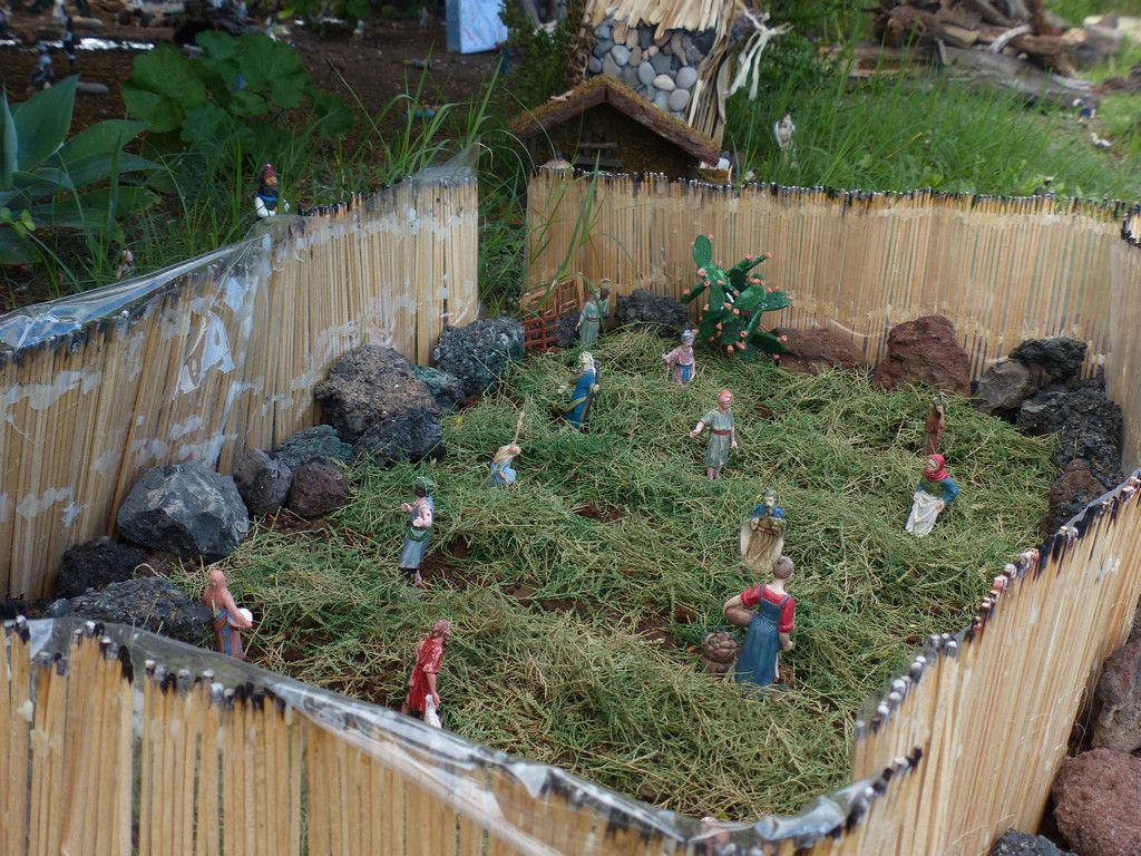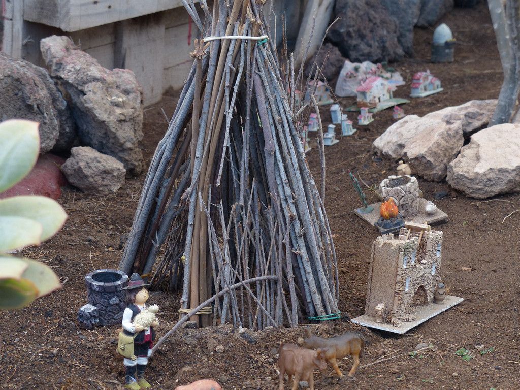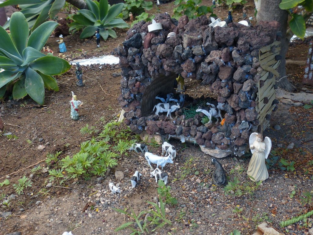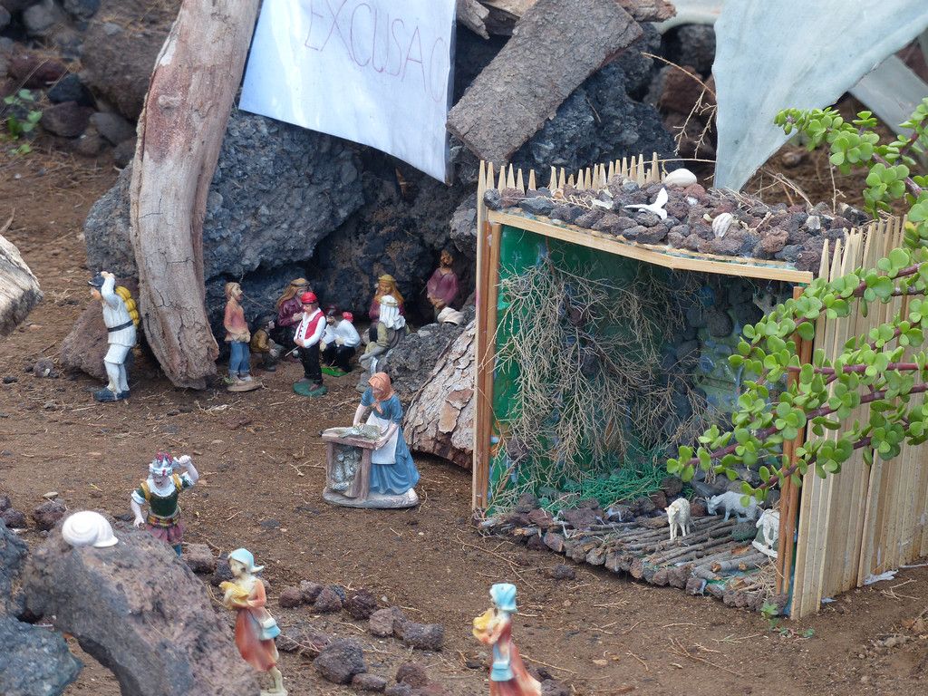 El nacimiento de este año recrea una tienda que representa su comercio de aceite y vinagre, donde trabajó casi toda su vida activa, un retrete y hasta un acueducto. Su pequeño belén de pocas piezas se ha convertido en una representación a todo lujo de detalles en un escenario de unos 15 metros cuadrados apróximadamente. Todo albergado bajo el centenario tarahal y en medio de un jardín que Adolfina cuida todo el año.