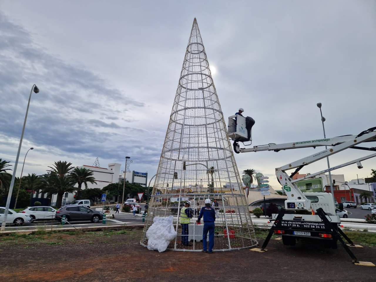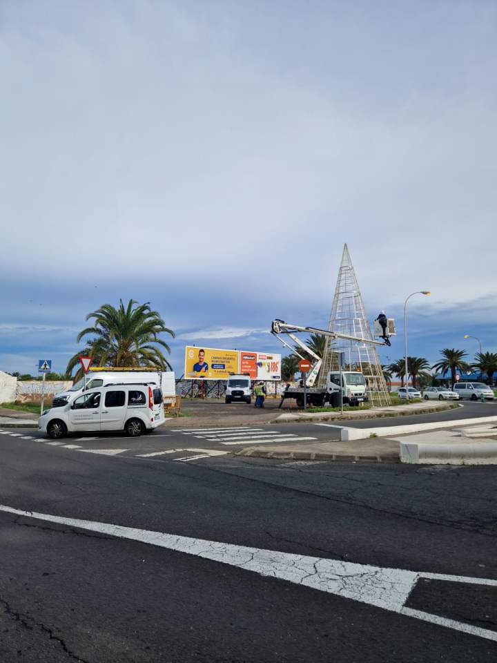 Después del encendido navideño oficial y la apertura de El Jardín de La Navidad, en el Parque Arnao, como punto de encuentro de lugareños y visitantes, la Concejalía de Alumbrado Público de Telde, liderada por Juan Francisco Artiles, de la mano de la empresa concesionario del servicio, Elecnor, continúa decorando de Navidad y dando luz a las calles de la ciudad. Así, los trabajadores encargados han instalado un nuevo árbol de 12 metros de altura en la entrada del municipio.