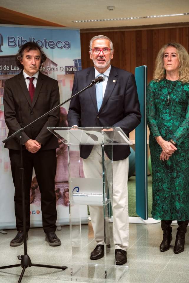 En el acto de inauguración intervinieron Lluís Serra, rector de la ULPGC; Teresa Mayans Vázquez, Subdelegada del Gobierno en Las Palmas; Alina Elena Ramaru, cónsul honorario de Rumanía en Canarias; Jin Taira, vicerrector de Internacionalización, Movilidad y Proyección Internacional; José M. Álamo, vicerrector de Cultura, Deportes y Activación Social de los Campus; y María del Carmen Martín Marichal, directora de la Biblioteca Universitaria.