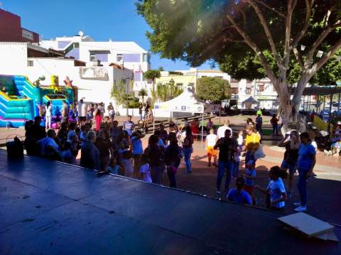 El programa Teldelandia Infantil, promovido por el Ayuntamiento de Telde, llevó este sábado la magia navideña a la plaza del casco antiguo de Jinámar, donde hubo una jornada festiva llena de actividades para toda la familia, especialmente para los más pequeños con castillos hinchables, pinta caras y talleres.
