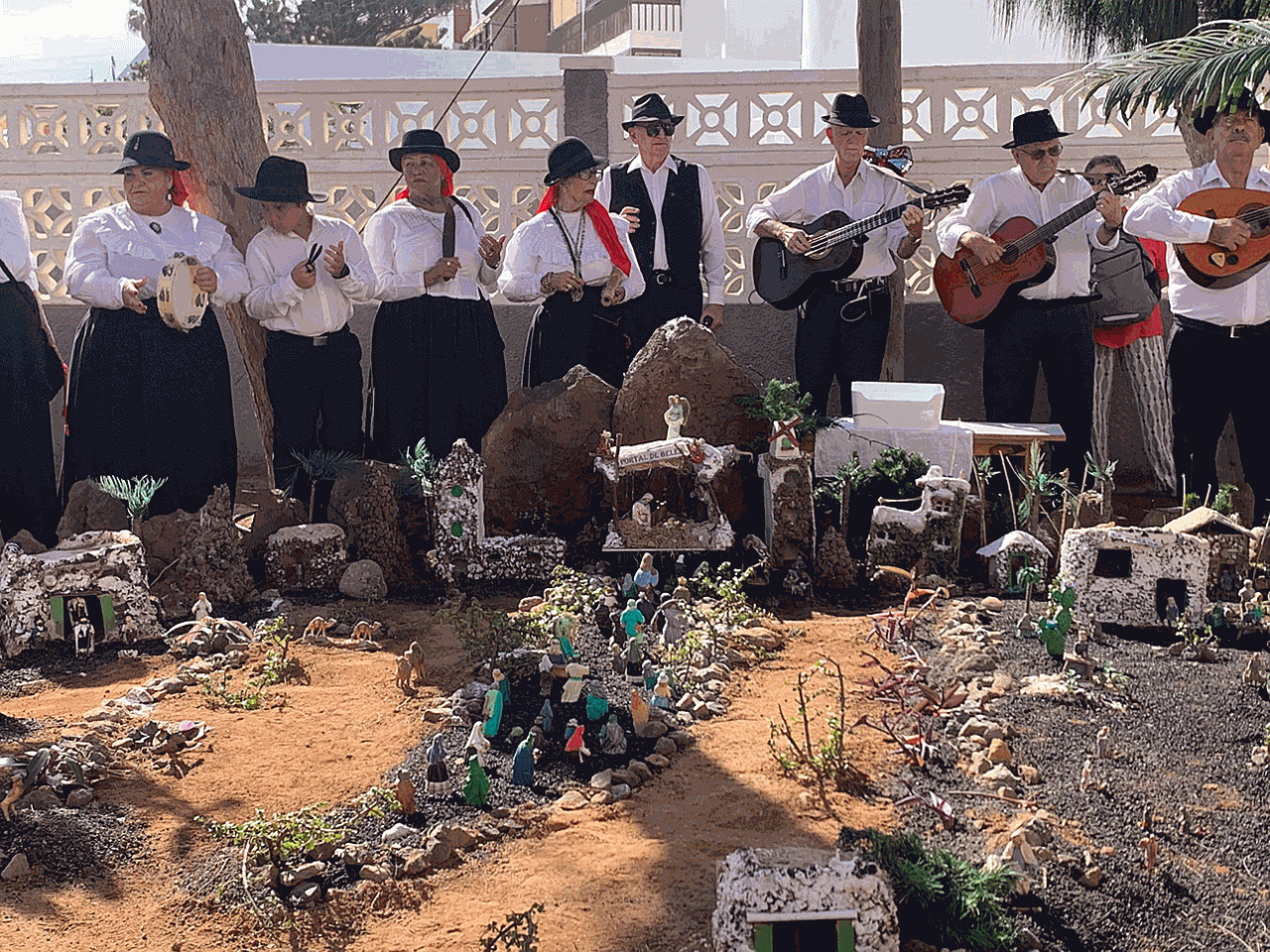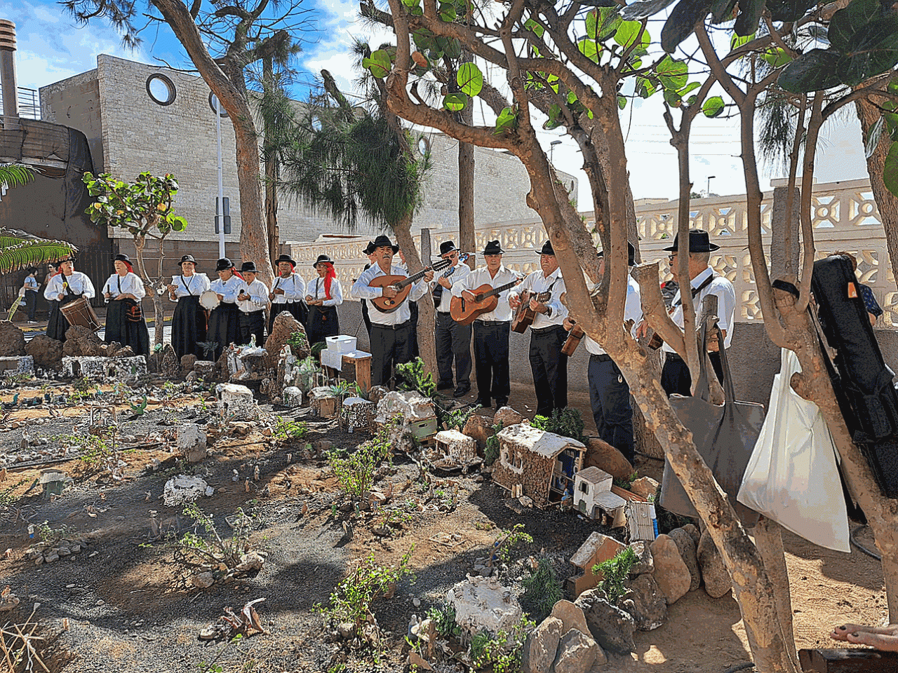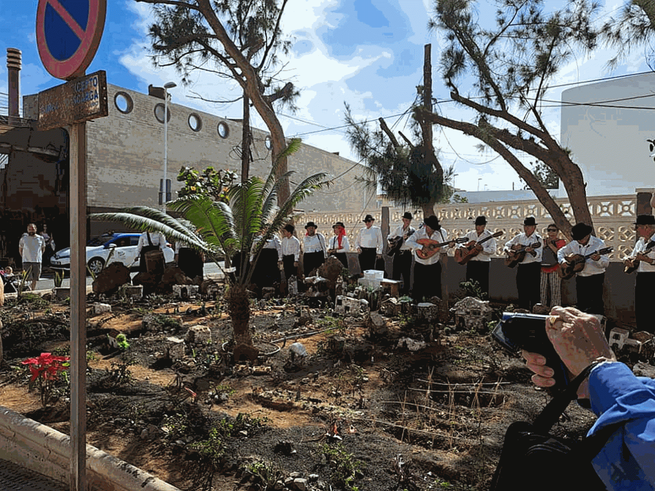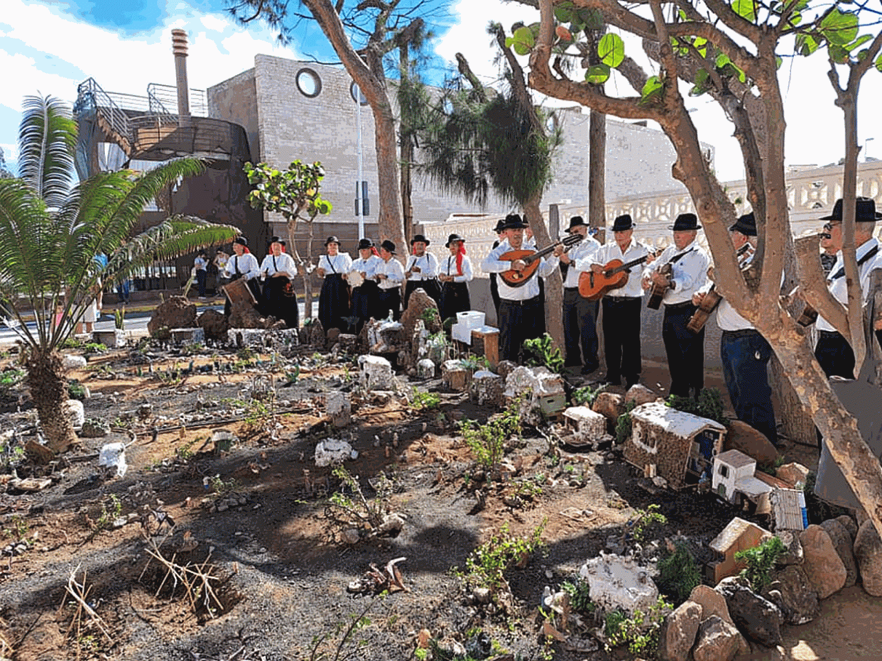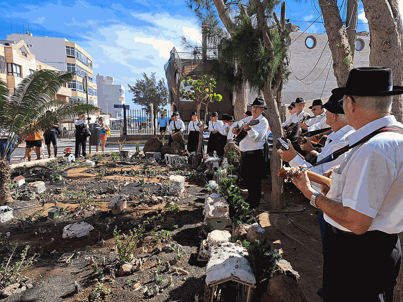 La apertura del nacimiento estuvo animada por la parranda La Sal, que interpretó un repertorio de canciones navideñas y contó con la presencia del vicealcalde Sergio Ramos y de la concejala de Playas, María González Calderín, entre otras personas.