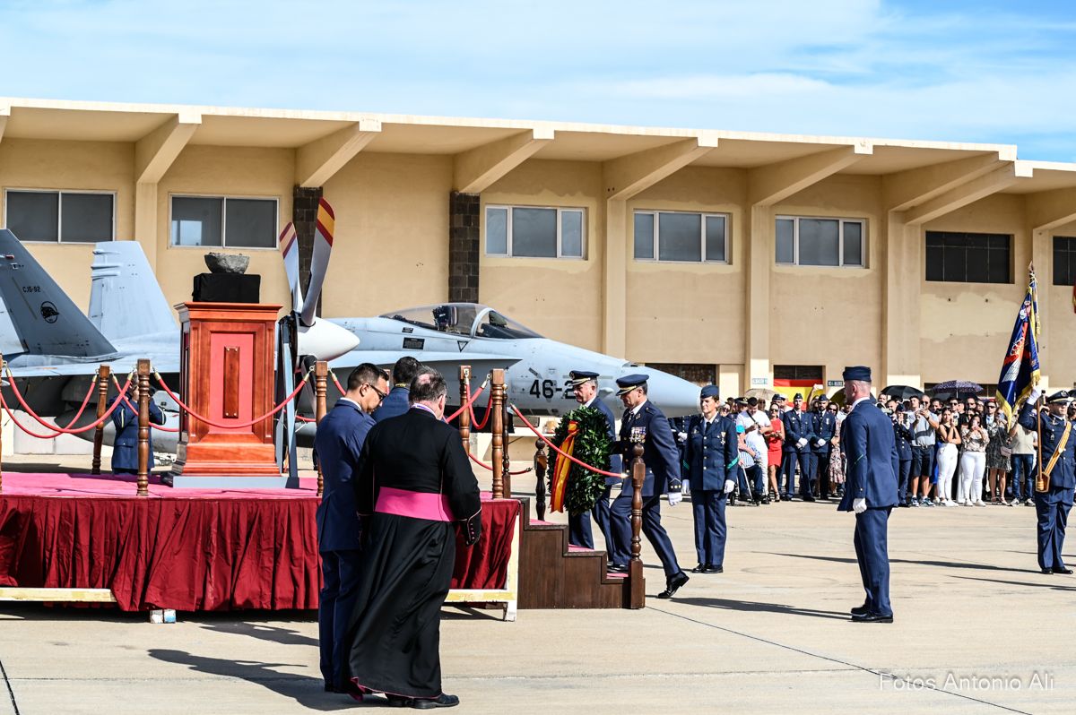 Durante la elocución de la máxima autoridad del Ejército del Aire y del Espacio en Canarias, el general Francisco Javier Vidal expuso que “tal y como ha hecho desde siempre, el Mando Aéreo de Canarias ha estado trabajando de forma solidaria en el mantenimiento de la paz y seguridad internacional, desplegando medios aéreos y capacidades aeronáuticas en los distintos destacamentos que el Ejército del Aire y del Espacio tiene repartidos en el exterior de nuestras fronteras. También ha colaborado con los diferentes organismos de la Administración, en beneficio de la sociedad canaria, especialmente en casos de emergencia y catástrofes. Pongo como ejemplo la actuación, desde la Base Aérea de Gando, de los aviones apagafuegos del 43 Grupo este verano en su labor contra los incendios forestales que afectaron a varias islas. Asimismo, todos los aviadores continuamos en la labor diaria de prepararnos para la defensa de España y de este territorio canario en particular, así como de sus ciudadanos, si fuera necesario. Pero quizás más importante, en todo este tiempo es que el Ejército del Aire y del Espacio no ha dejado de cumplir su misión permanente de vigilancia y control de los cielos canarios, proporcionando las 24 horas del día, los 7 días de la semana, seguridad a este entorno aéreo, que es fuente de prosperidad para la sociedad canaria. Este esfuerzo se ha visto incrementado recientemente al extender nuestro ámbito de responsabilidad al espacio y al ciberespacio, nuevos dominios donde es necesario establecer un entorno de seguridad que nos permita continuar nuestro modo de vida.”