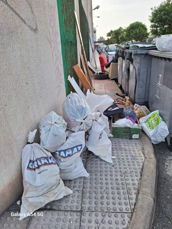 Los vecinos denuncian que los residuos ocupan la acera e impiden el paso