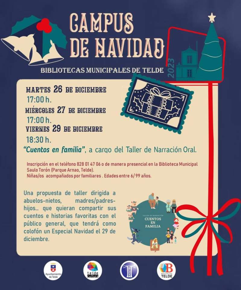 Las bibliotecas municipales de Telde organizan un Campus de Navidad que se desarrollará del 26 al 29 de diciembre, con talleres de música, literatura, teatro, habilidades de pensamiento, narración oral, manualidades y mucha diversión.