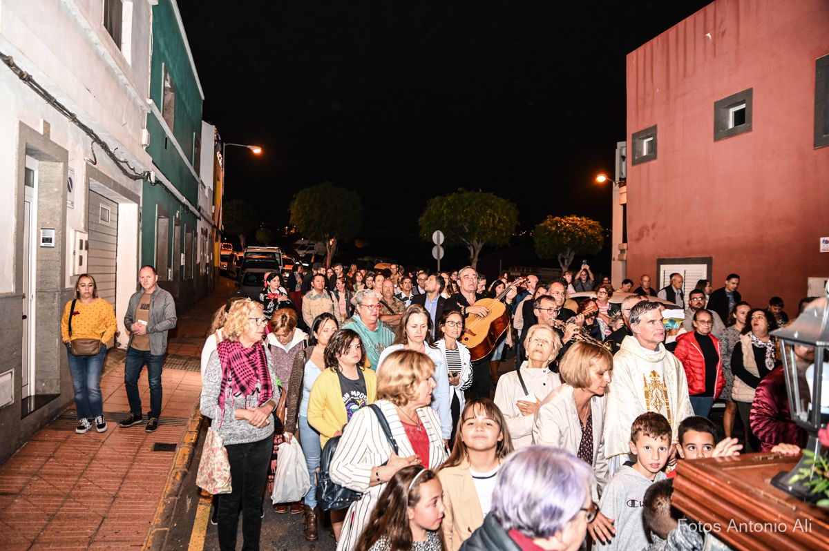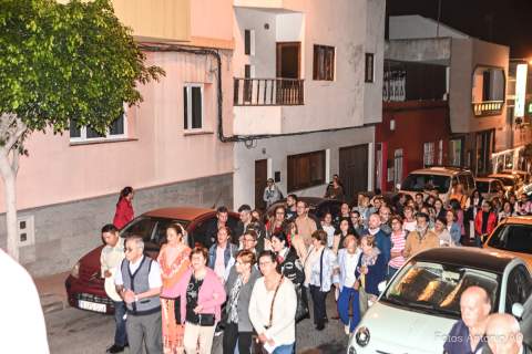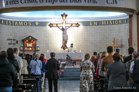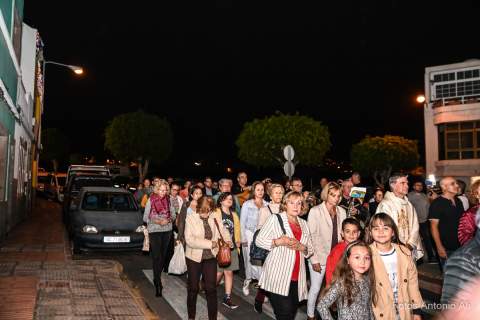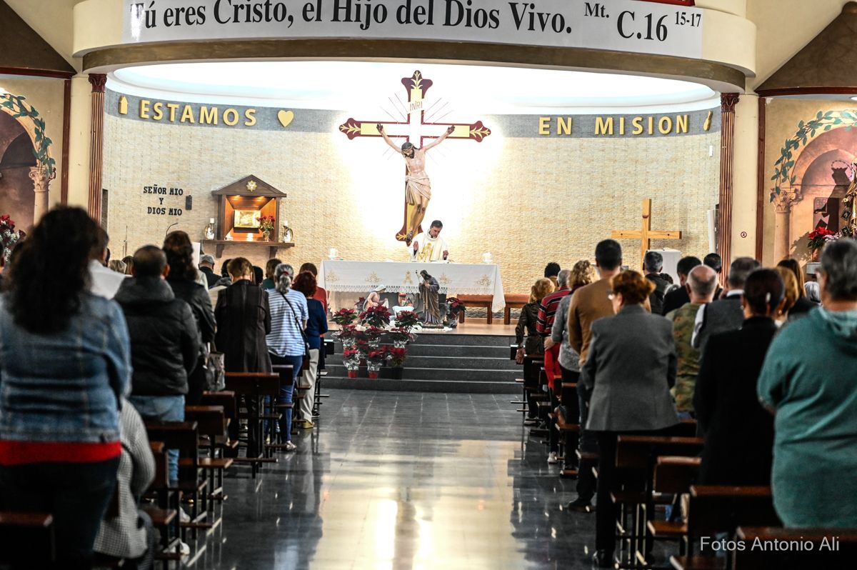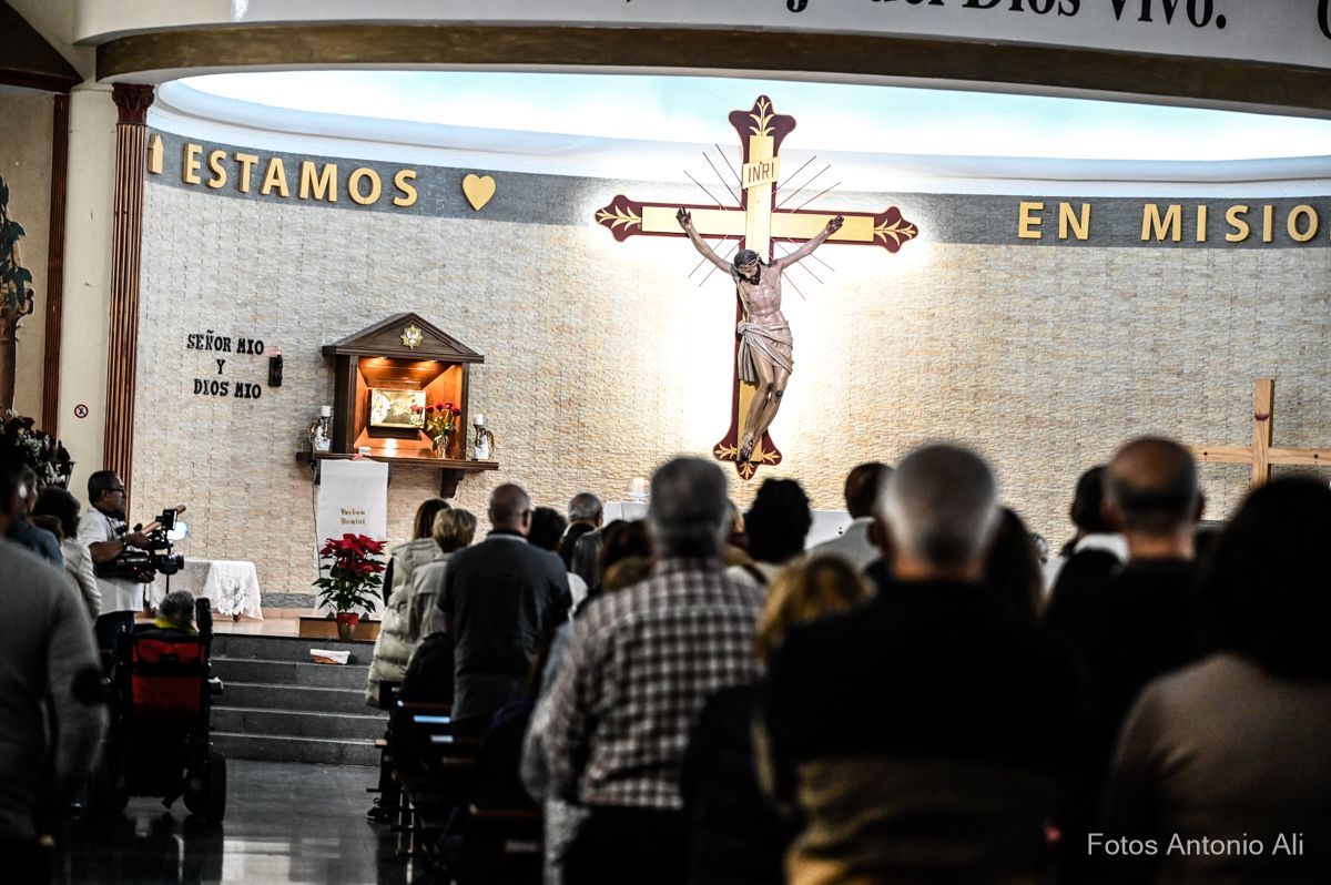 Una misa que comenzaba a las 19.00 horas y que, tras su celebración de 30 minutos, dio paso a la procesión de la imagen. Tras su salida al pórtico de la iglesia, recorrió las calles Juan Ismael, Diego Soprani y Ponce de León, para concluir por García Escámez.