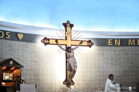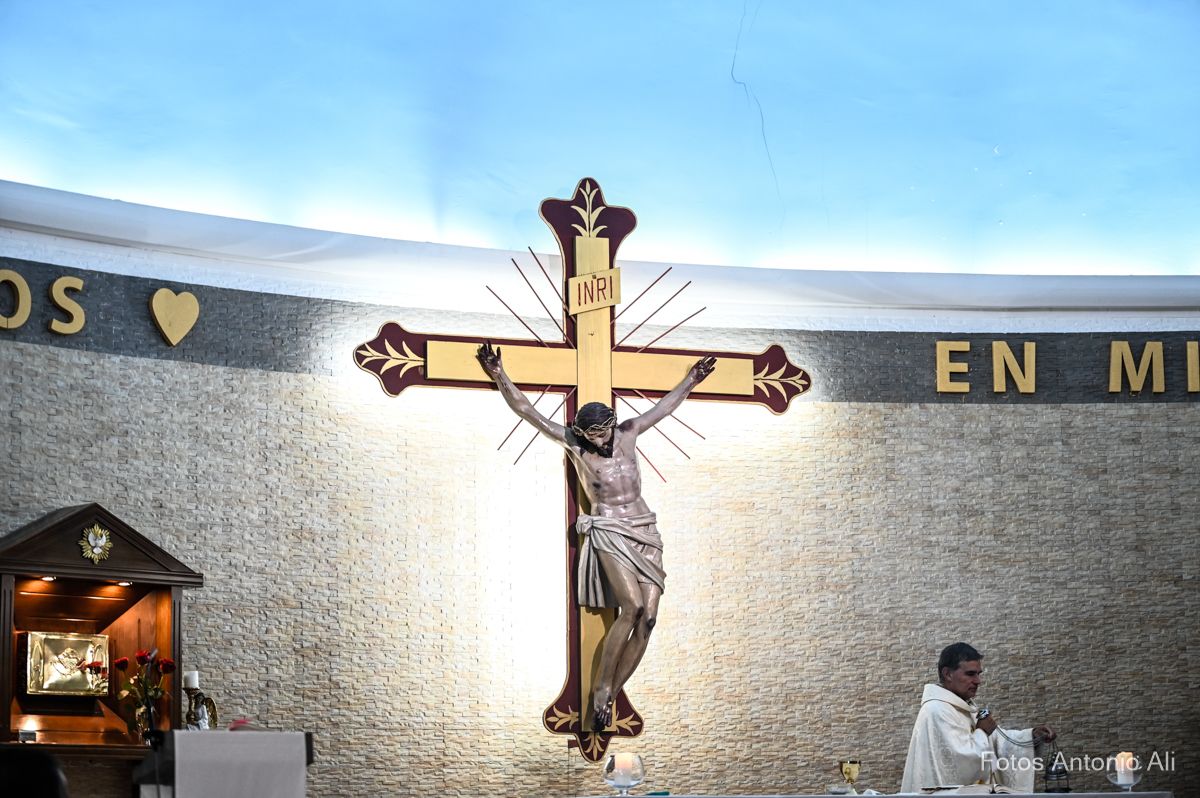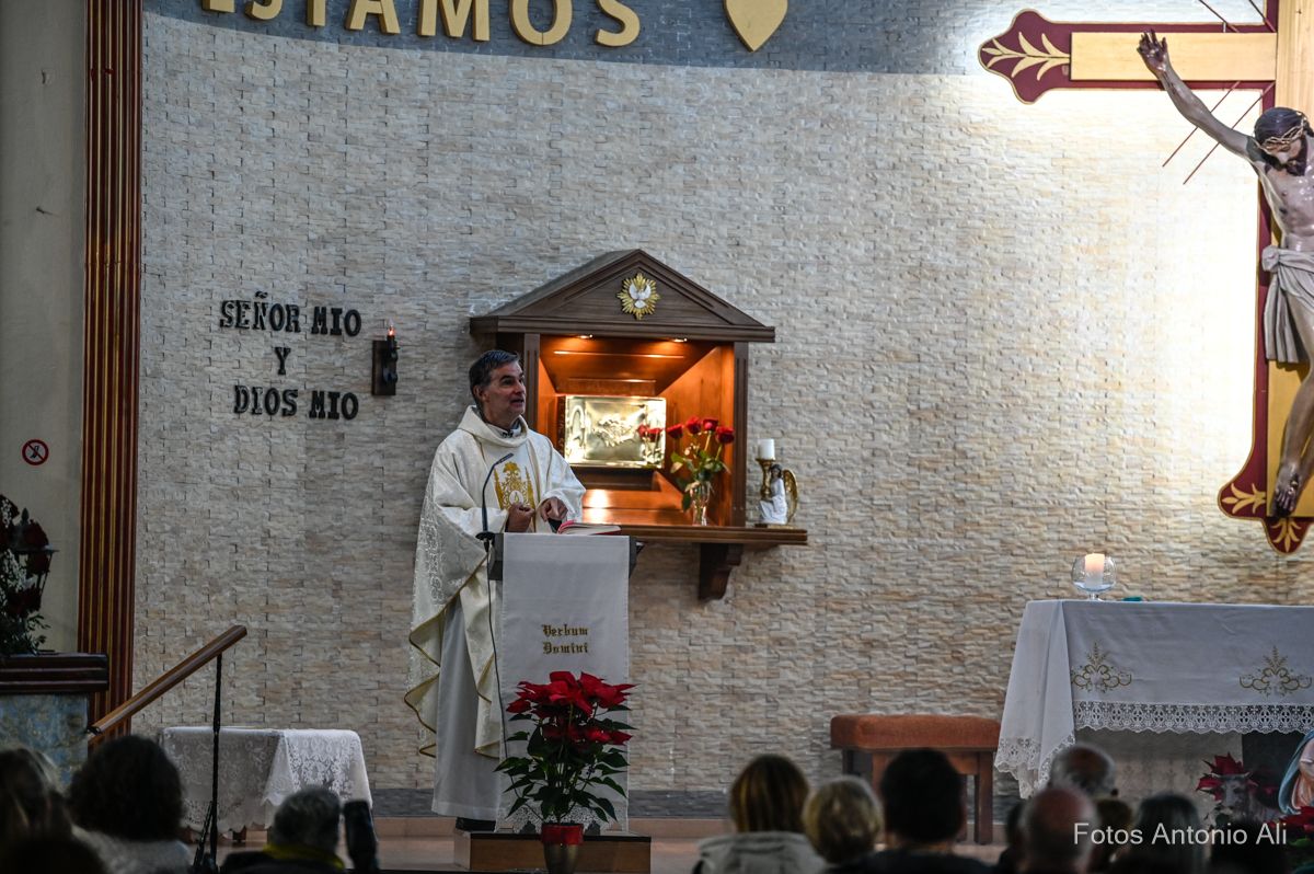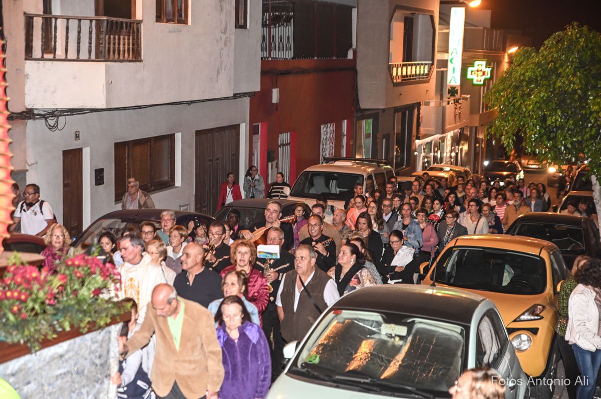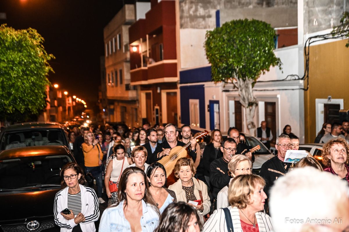 Una misa que comenzaba a las 19.00 horas y que, tras su celebración de 30 minutos, dio paso a la procesión de la imagen. Tras su salida al pórtico de la iglesia, recorrió las calles Juan Ismael, Diego Soprani y Ponce de León, para concluir por García Escámez.