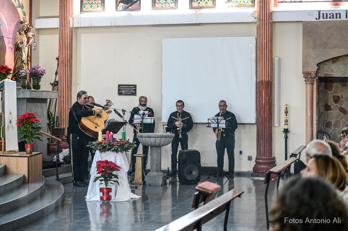 Los mariachis entonaron canciones mejicanas y propias de la Virgen de Guadalupe, entre ellas Una espiga dorada, La guadalupana o Cielito lindo. Los niños y mayores ofrendaron a la virgen con flores y pascuas que adornaron el templo parroquial bajo la advocación de San Pedro.