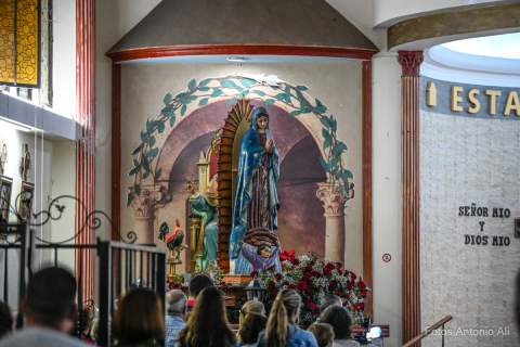 El Ejido rebosó por segundo año su templo para celebrar el día de la Virgen de Guadalupe. Una iniciativa que estrenó el pasado año el sacerdote Ricardo Miranda, titular también de otras parroquias, entre ellas Lomo Magullo. Impuso su celebración, junto a la comunidad mejicana y su tradicional repertorio musical.