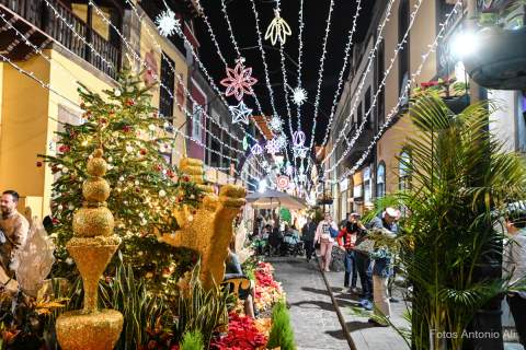 La 25ª edición embellece desde la noche de este miércoles la calle Capitán Quesada y los alrededores de la Plaza de Santiago de Los Caballeros hasta el 2 de enero. Unas diez mil plantas y elementos decorativos iluminan el casco histórico del municipio tras el acto de inauguración que ha tenido lugar frente a las Casas Consistoriales con la presencia del alcalde de la ciudad, Teodoro Sosa Monzón; el concejal de Parques y Jardines, Nicolás Mederos Díaz y la corporación municipal. El evento estuvo amenizado por la cantante Marta Bolaños.