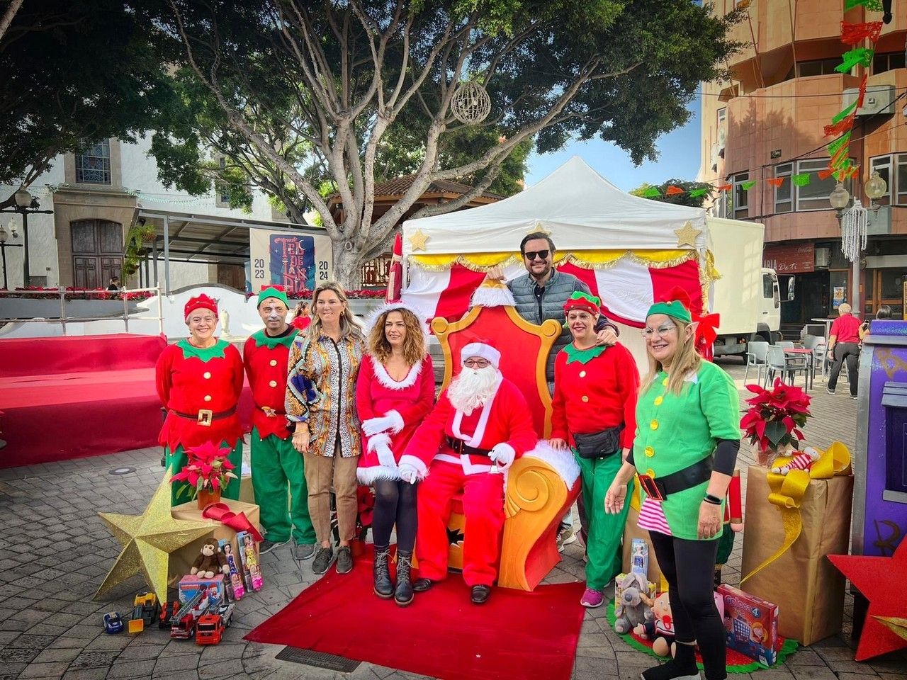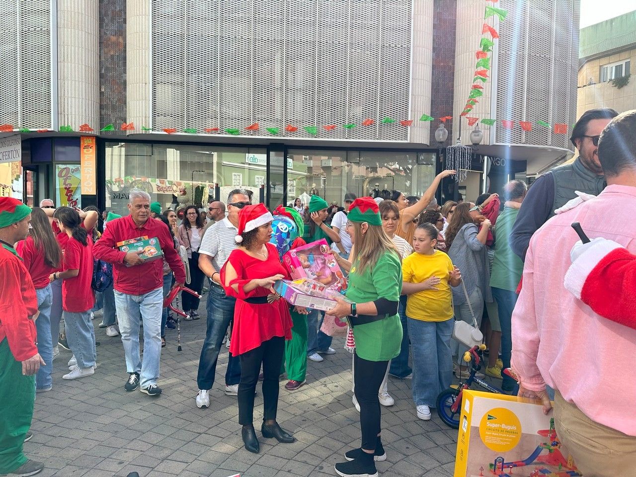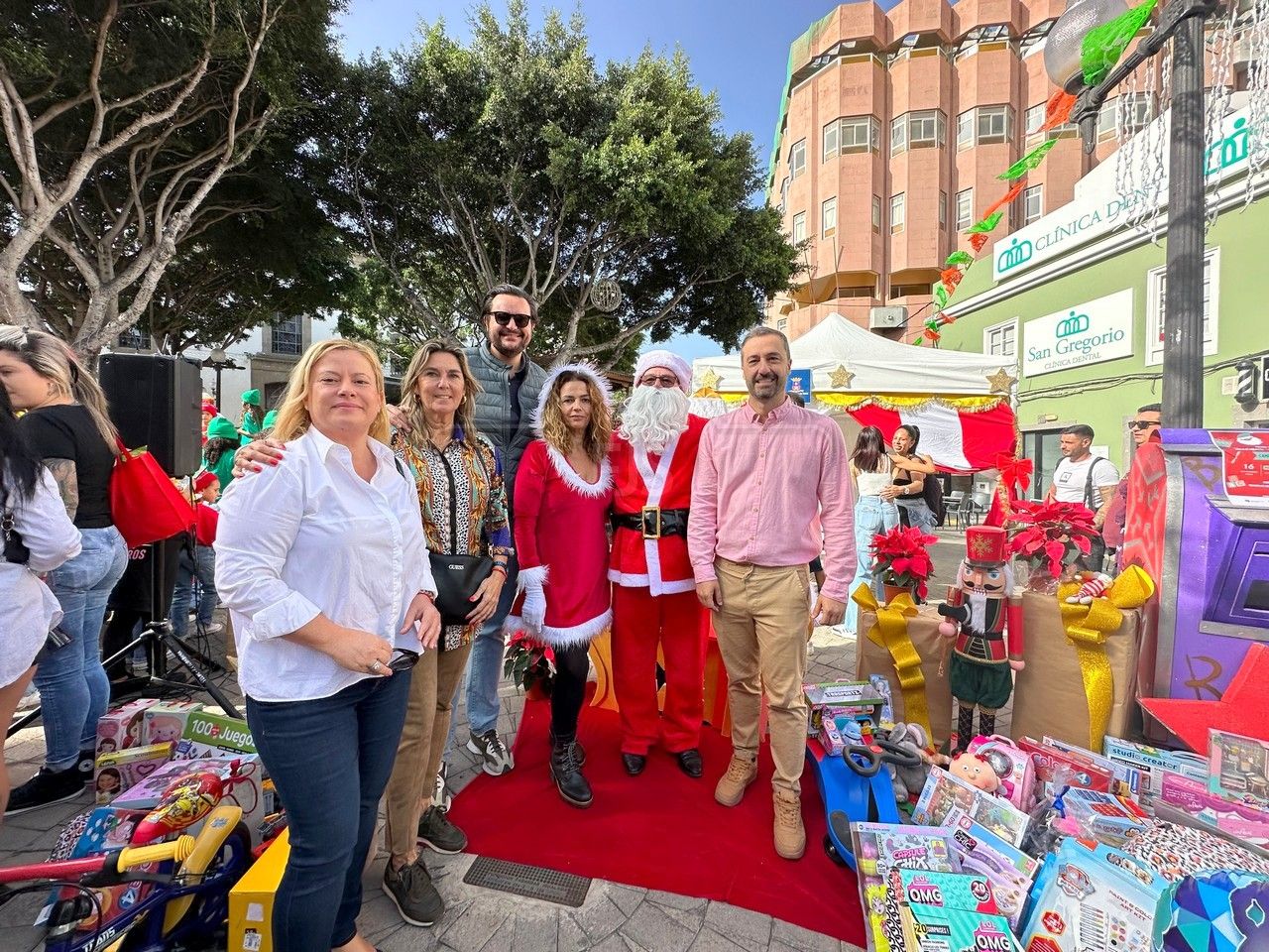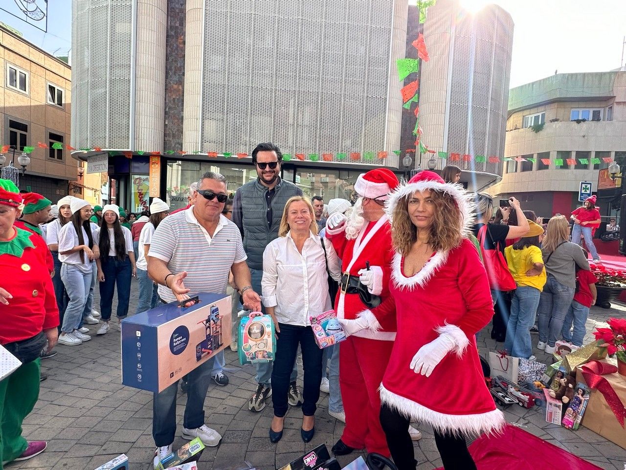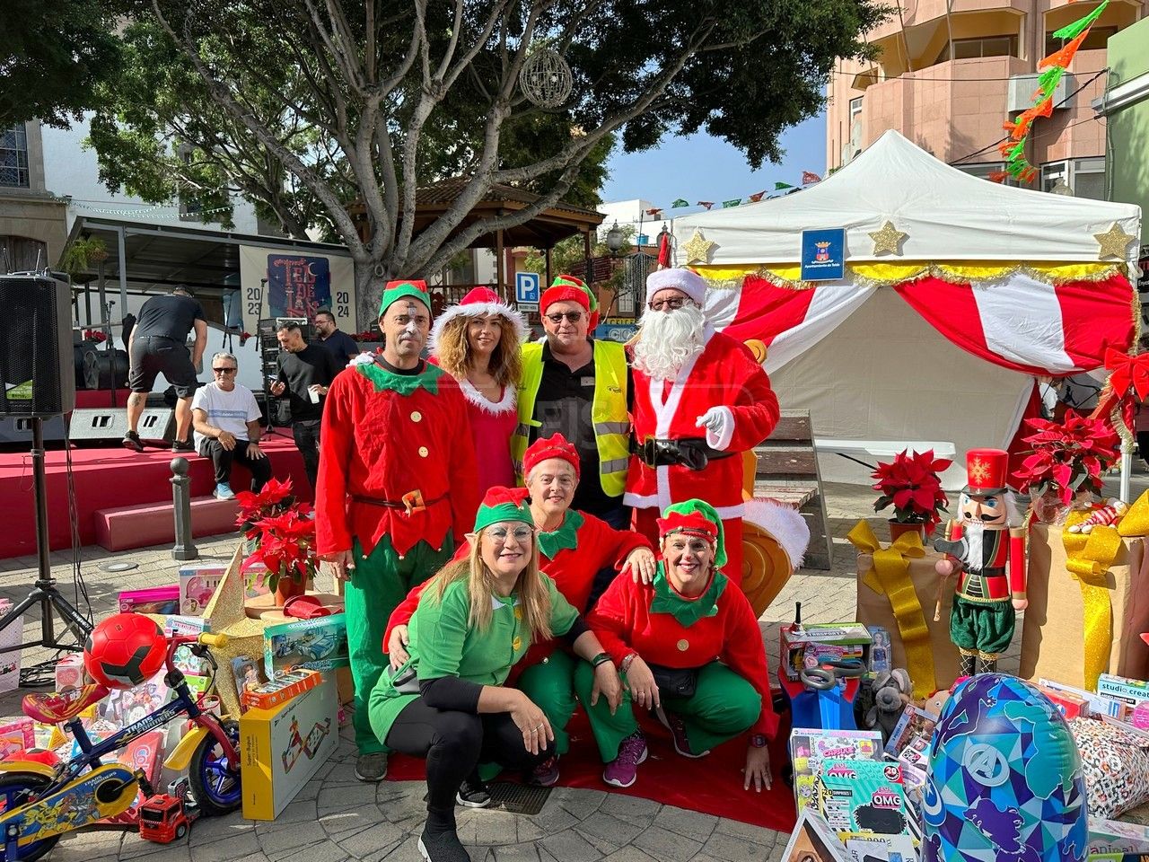 El entorno de la plaza de Los Llanos, en zona comercial abierta de Telde, acogió este sábado el acto principal de la campaña de recogida de juguetes organizada por el área municipal de Servicios Sociales que dirige la concejala Adela Álvarez para su reparto entre las familias más desfavorecidas de la ciudad.