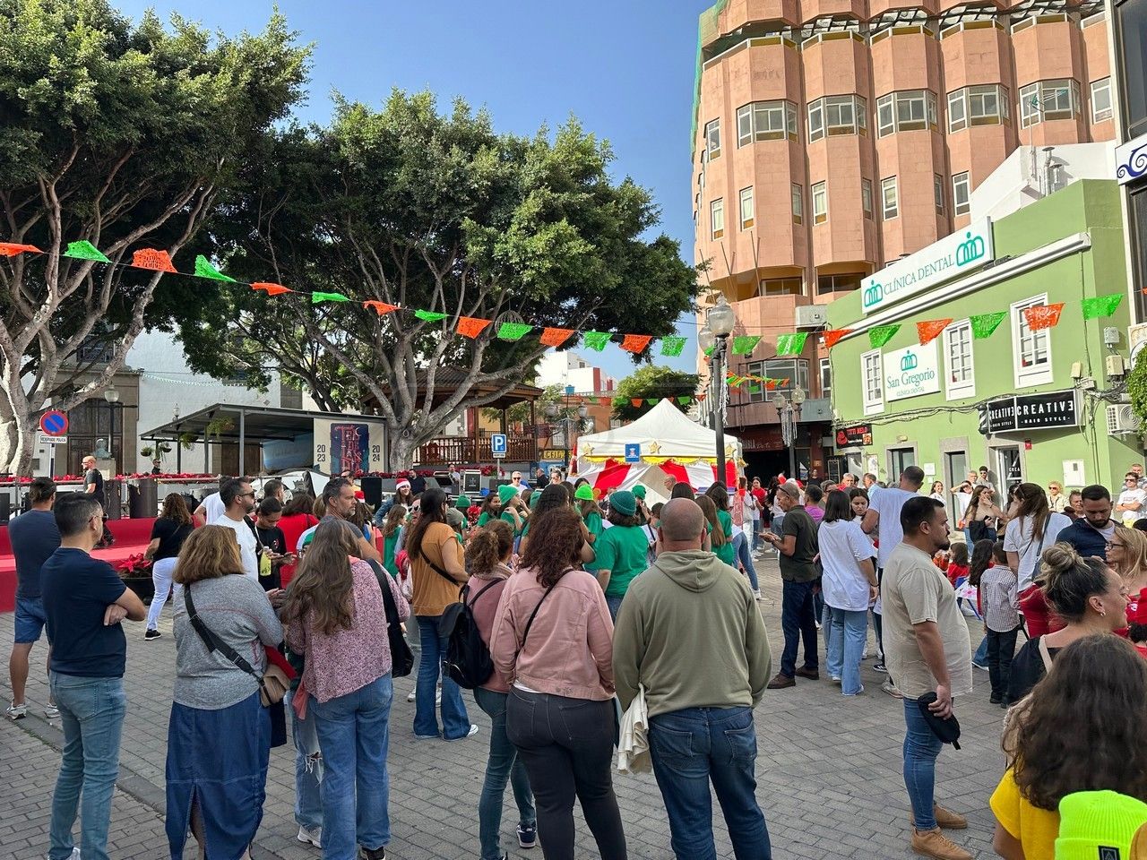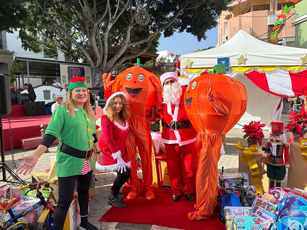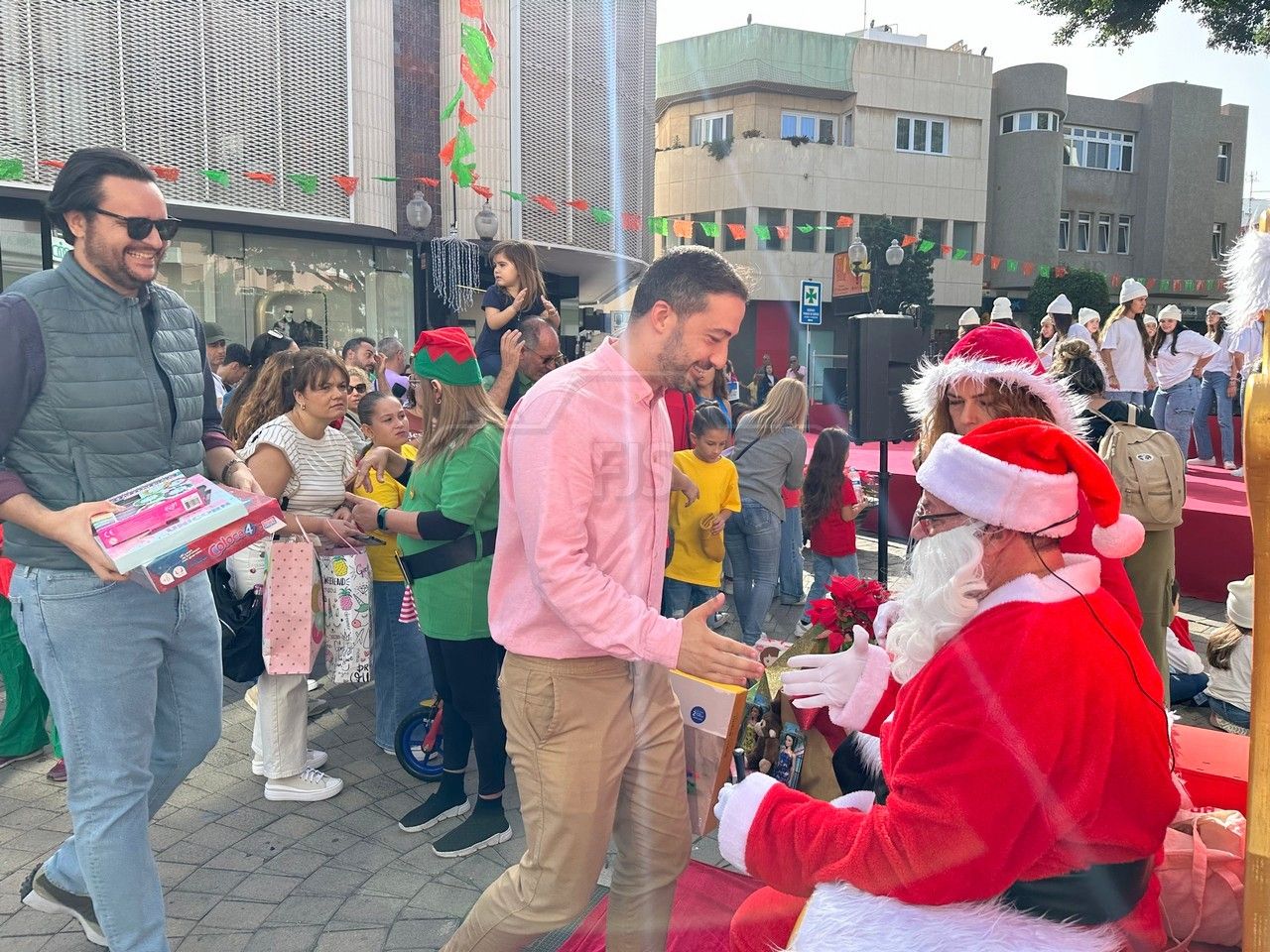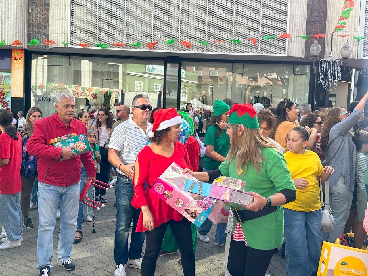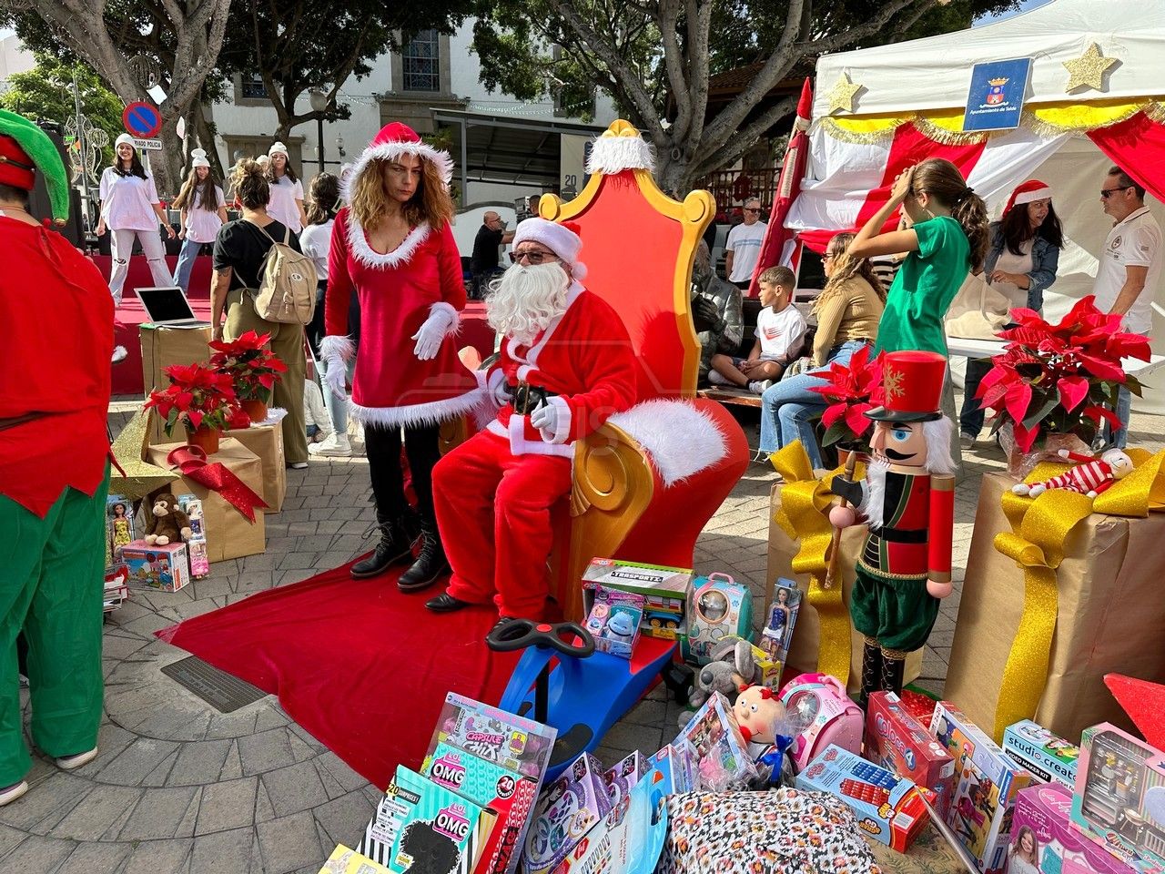 El entorno de la plaza de Los Llanos, en zona comercial abierta de Telde, acogió este sábado el acto principal de la campaña de recogida de juguetes organizada por el área municipal de Servicios Sociales que dirige la concejala Adela Álvarez para su reparto entre las familias más desfavorecidas de la ciudad.