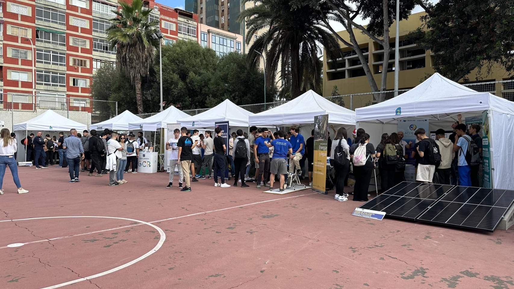 El Consejo Insular de la Energía de Gran Canaria ha celebrado en el IES La Isleta la Feria por el Clima y la Energía Sostenible de Gran Canaria, en la que han participado 250 alumnos de diez centros educativos de siete municipios, entre ellos dos de Telde, que han disfrutado de un encuentro cargado de ciencia e innovación coordinado por la Asociación TribArte y han participado en sesiones formativas específicas sobre eficiencia energética y energías renovables, actividades y han expuesto sus propuestas para mejorar la eficiencia energética de sus centros