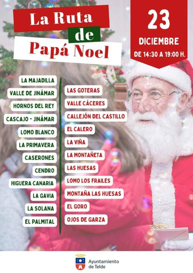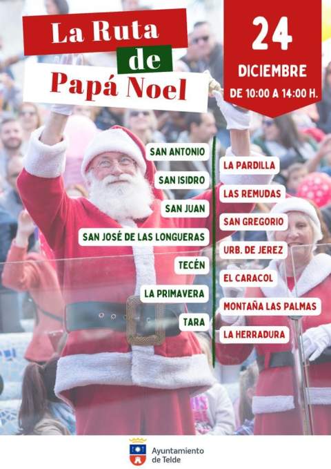 Papá Noel realizará durante este sábado y el domingo, 23 y 24 de diciembre, un periplo por más de 60 barrios o sectores del municipio y los hará con un coche descapotable acompañado por sus elfos para llevar la alegría a la mayor parte de los rincones de Telde.