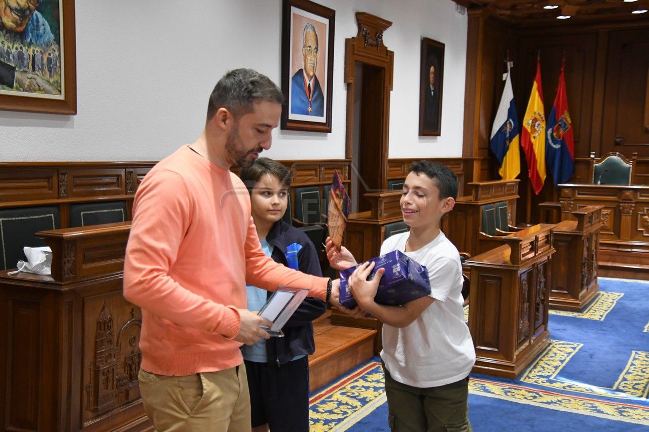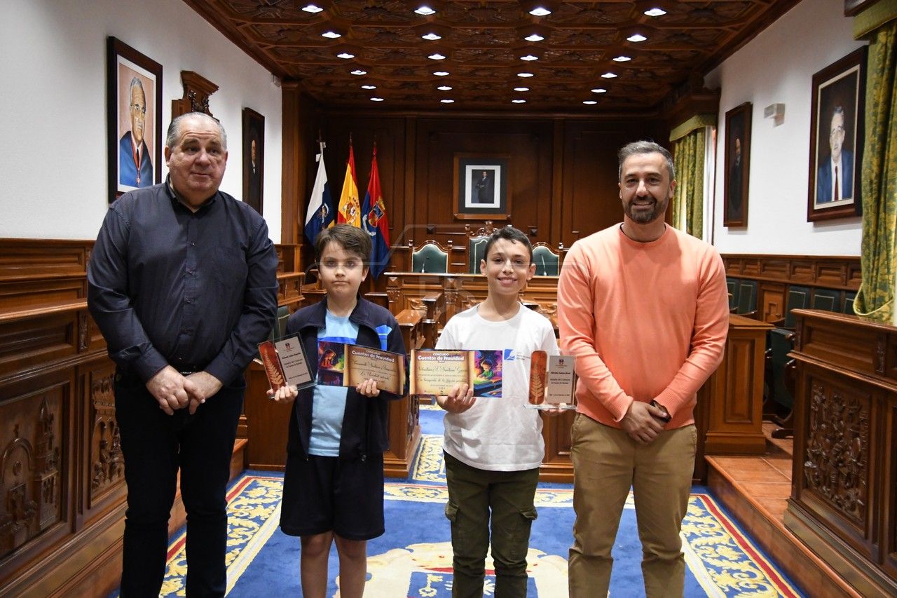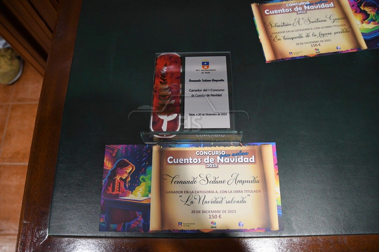En la mañana de este miércoles, la ciudad de Telde ha otorgado los premios a los jóvenes ganadores del I Concurso de Cuentos de Navidad. Las Casas Consistoriales acogieron el acto, en el que el alcalde, Juan Antonio Peña, y el concejal de Cultura, Juan Martel, hicieron entrega del diploma que certificó a los vencedores del certamen de relatos navideños y de un cheque de 150 euros para cada uno.