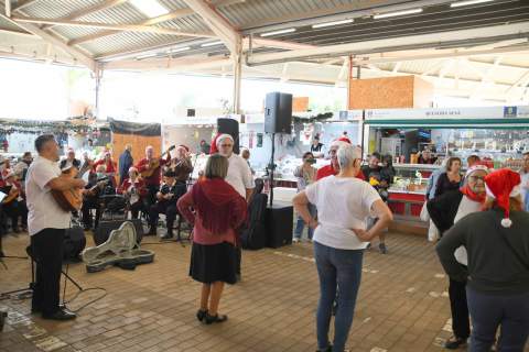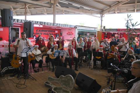 Un concierto navideño que animó la mañana de compras en la plaza de abastos municipal.