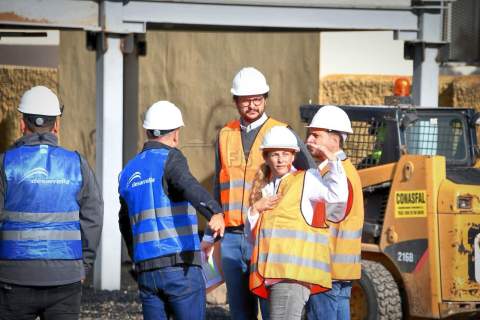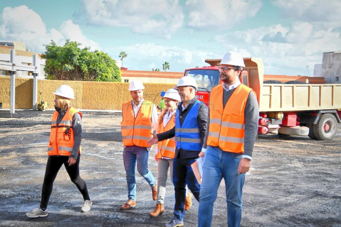 El vicealcalde de Telde, Sergio Ramos, y los concejales de Desarrollo Local y Urbanismo, Nayra Navarro y Juan Francisco Jiménez, respectivamente, visitaron este viernes las obras del aparcamiento modular de Arnao para comprobar el desarrollo de los trabajos de construcción de este equipamiento con capacidad para albergar 164 vehículos y que se espera que esté terminado en los próximos meses.