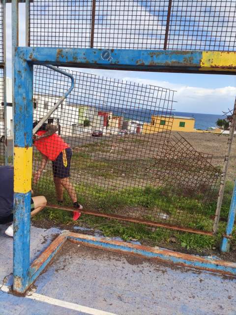 El Patronato de Fiestas de Playa del Hombre denuncia las “pésimas” condiciones en las que se encuentra la cancha deportiva.