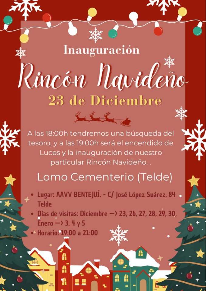 Lomo Cementerio tení previsto inaugurar este sábado a las 18.00 horas un Rincón Navideño con una búsqueda del tesoro y el encendido de las luces a las 19.00 horas, pero el acto ha tenido que suspender por el aviso de lluvia.