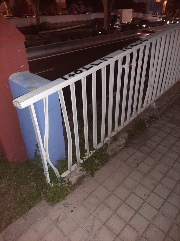 Vecinos del sector de La Montañeta y Casas Nuevas denuncian que la barandilla del puente peatonal que une ambos barrios, sobre la GC-1, está suelta y resulta un peligro para los transeúntes, ya que si alguien se apoya puede caerse a la autovía.