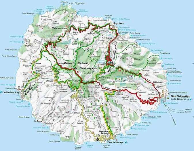 Al comenzar la conquista, la isla se encontraba dividida en 4 cantones: Mulagua, Hipalan, Orone y Agana, identificándose estos territorios con los grandes valles de Hermigua, San Sebastián, Valle Gran Rey y Vallehermoso, respectivamente.