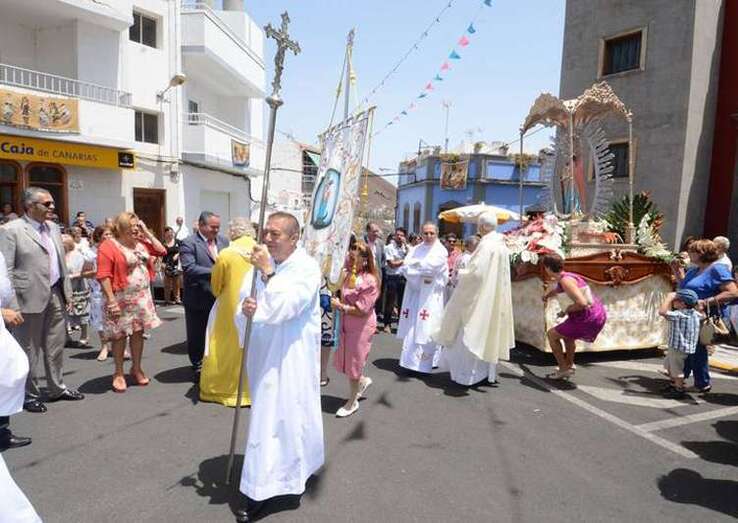 La procesión baja por este empinado vial y llega hasta la carretera general de acceso al barrio, por la cual retorna a la Plaza de Las Nieves y al templo erigido en el lugar.