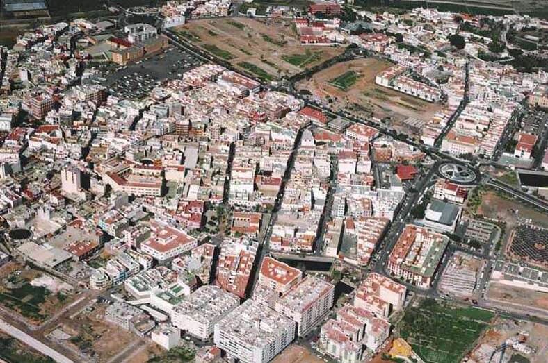 Una calle enlaza el núcleo historico de Telde con las poblaciones situadas al Naciente