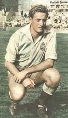 En día tal como hoy, hace ahora mismo 85 años, es decir el 24 de julio de 1929, nace en Las Palmas de Gan Canaria Pantaleón Quevedo Vernetta, quien desde muy joven mostró unas grandes cualidades en la práctica del fútbol. A pesar de su corpulencia y la firmeza de sus acciones, no dejaba de exhibir una excelente clase en la realización del fútbol, además de mostrar un perfecto toque de balón. Era un jugador noble que siempre se disculpaba con el contrario al sufrir un encontronazo y siempre fue elogiado como un gran futbolista de elegantes formas en la línea defensiva del equipo, inspirando seguridad a sus compañeros. Era apodado “El gigante rubio”, con los que forma una línea de gran entendimiento junto a Juanito Beltrán y Gilberto Beneyto. En la temporada 1951-1952 fichó y jugó en el equipo de la Unión Deportiva Las Palmas, donde destacó sobremanera.