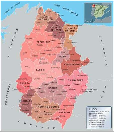 Geográficamente, la ciudad se encuentra situada sobre una colina, en una comarca de montañas redondeadas y no muy elevadas en las tierras del Alto Miño y circundada por el propio río Miño, además de otros de menor entidad. El municipio, incluido en la Reserva de la biosfera «Tierras del Miño», es el segundo más extenso de Galicia, y en el que en el año 2012 habitaban 99.241 personas, lo que lo convierte en el cuarto de esta comunidad autónoma en población, después de Vigo, La Coruña y Orense.