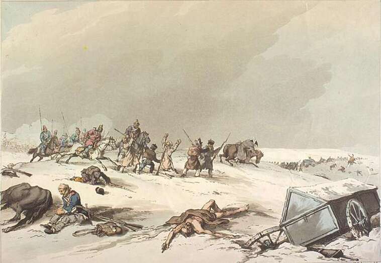 Un día tal como hoy, hace ahora mismo 202 años, es decir el 14 de septiembre de 1812, las tropas francesas de Napoleón llegan a las puertas de Moscú. Las columnas rusas en retirada desde el oeste comenzaron a llegar a Moscú, siendo recibidas con expectación por la población, que contempla desolada como sus soldados atraviesan las avenidas en silencio, con la cabeza baja, para después salir por el otro lado de la ciudad en dirección a Bronnitsy. El grueso del ejército ruso se acantona en las cercanías de Panky, a unos 15 km al sureste de Moscú. Los moscovitas recogen sus enseres, y siguen la retirada de su ejército en largas caravanas que abarrotan las puertas y puentes: de los 250.000 ciudadanos, sólo unos 15.000 se quedarán en la capital, casi todos enfermos y soldados heridos. La reducida colonia de franceses y sus aliados decide permanecer en la ciudad por motivos obvios.