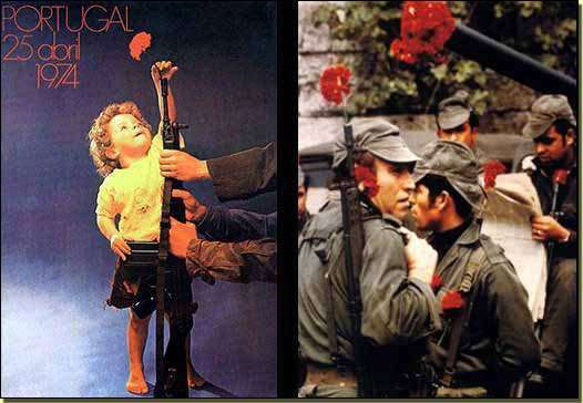 La caída del régimen dictatorial salazarista y “La Revolución de los claveles”, en aquel 25 de abril de 1974, nos dio un atisbo de esperanza y nos impactó mucho la escena de aquella mujer y aquella niña, poniendo un clavel en el caño del fusil ante la sonrisa del militar que lo portaba (las imágenes fueron censuradas posteriormente por la dictadura franquista).