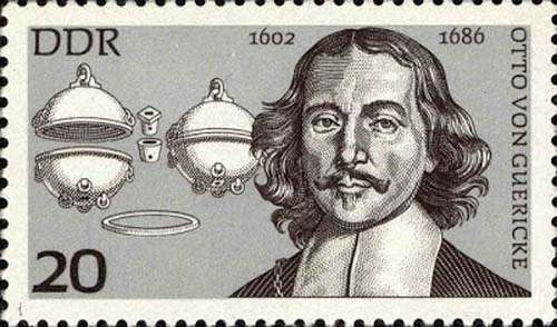 Dos hemisferios huecos de bronce estaban encajados y con una bomba se extraía el aire de la esfera resultante. Dos recuas de ocho caballos no pudieron separar las dos mitades. Cuando se insufló aire al interior de la esfera, los hemisferios se desprendieron. Hoy se siguen utilizando hemisferios vacíos similares en las demostraciones de la presión atmosférica en laboratorio. En 1663 inventa la primera máquina para generar electricidad y en 1672 descubre la electroluminiscencia. En astronomía sus investigaciones se orientaron a la predicción del regreso periódico de los cometas. Una bomba de vacío extrae moléculas de gas de un volumen sellado, para crear un vacío parcial. No obstante, posteriormente aparece la bomba de membrana o de diafragma es una bomba de desplazamiento positivo que, para bombear líquido, combina la acción recíproca de un diafragma de teflón o caucho y de válvulas que abren y cierran de acuerdo al movimiento del diafragma. Otto von Guericke falleció en Hamburgo el 21 de mayo de 1686.
