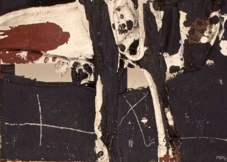 Obras anunciadas desde 1952, sus Muros, ocupan, entre 1955 y 1956, gran parte de su producción pictórica. Se trata de pinturas en las que, desde una esencia constructiva, el artista hace convivir dibujos sígnicos (anclas, escrituras inventadas y signos) con elementos procedentes de la realidad natural, principalmente de mineral: tierras, cerámicas y teselas, pero también maderas. La evolución de estos Muros se produce en el momento en que el artista horada algunos de sus lienzos creando espacios vacíos que anunciarán gran parte de sus trabajos de arpillera de los sesenta, y apareciendo el diálogo construcción-destrucción fundamental en la producción del artista.