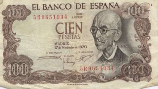 Como homenaje a su labor artística, el Banco de España decidió emplear un retrato de Manuel de Falla en el anverso de los billetes de 100 pesetas, que fueron emitidos a partir del 17 de noviembre de 1970.