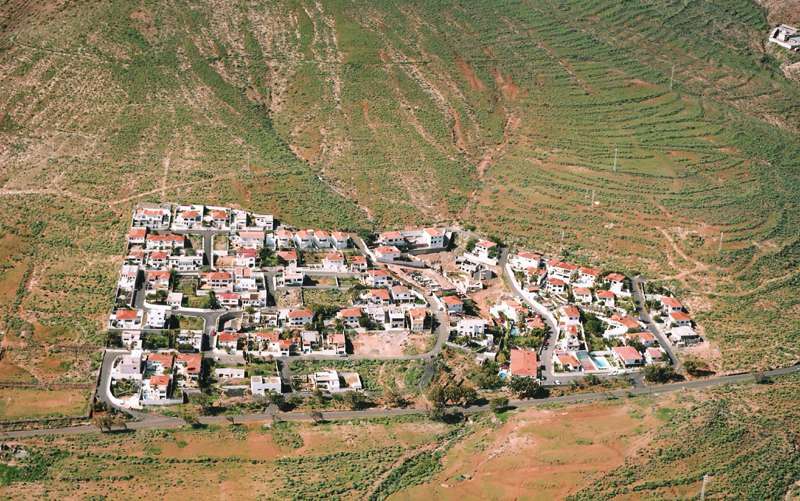 Tiene al Sur terrenos de la finca matriz y el Barranco de Aguatona, mientras que al Norte tiene el Barranco de Mujama y el Caserío Casa Alonso.