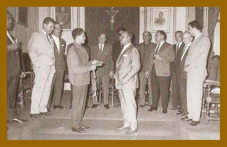 Incluimos una foto que se hiciera en la Sala de Plenos del Ayuntamiento de Telde, siendo alcalde Don Sebastián Álvarez Cabrera, cuando se proclamó por primera vez Campeón de España y vino a brindar su título a la ciudad en la persona del edil municipal. Foto en la que comprobamos el paso del tiempo, casi todos los que en ella figuran ya han muerto, muchos de ellos compañeros de trabajo en mis inicios como empleado municipal, e incluso reconozco en la misma a mi padre que fue una gran aficionado al deporte del boxeo y gran amigo de Pedro Monzón Amador.