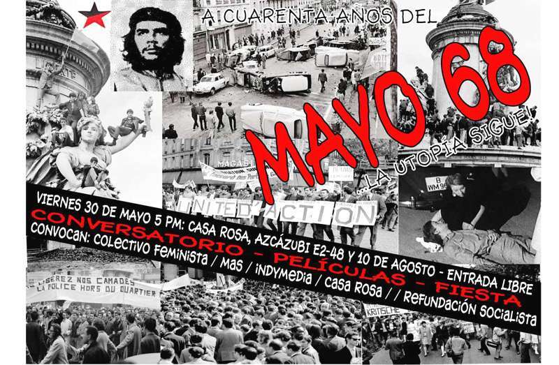 Un día tal como hoy, hace ahora mismo 47 años, es decir el 3 de mayo de l968, en la plaza de la Sorbona (París, Francia), se reúne un grupo de estudiantes para escuchar las comparecencias de Cohn-Bendit y sus compañeros. A las cuatro de la tarde la Universidad estará rodeada por la policía que detendrá, en contra de lo pactado, a varios estudiantes. Esto originará numerosas manifestaciones espontáneas. Ha comenzado el "Mayo del 68", estas protestas se producirán durante los meses de mayo y junio de 1968. Si bien, fue iniciada por grupos estudiantiles de izquierda contrarios a la sociedad de consumo, a los que posteriormente se unieron grupos de obreros industriales, los sindicatos y el Partido Comunista Francés. Como resultado, tuvo lugar la mayor revuelta estudiantil y la mayor huelga general de la historia de Francia, y posiblemente de Europa occidental, secundada por más de nueve millones de trabajadores. Estuvo vinculado con el movimiento hippie que se extendía entonces.
