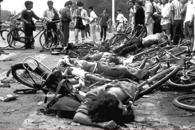 Recordamos con estupor la barbarie llevada a cabo por las autoridades chinas, que  tras las protestas y las llamadas del Gobierno pidiendo su disolución, al ser infructuosas, la decisión tomada fue suprimir las protestas por la fuerza, en lugar de acceder a sus reivindicaciones.