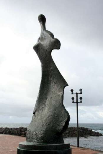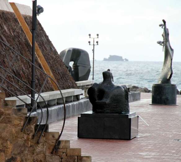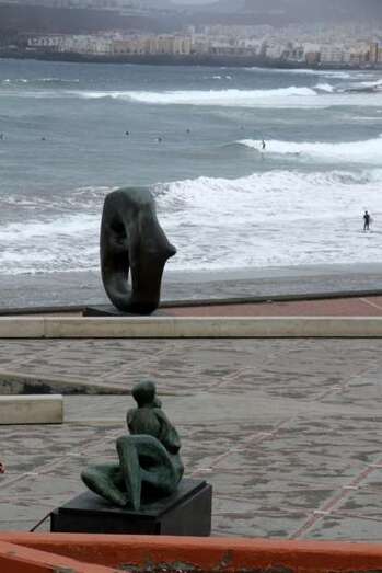 Siete esculturas en bronce destacando su monumentalidad frente al Atlántico que en esta zona adquieren una especial significación en cuanto a la estática fuerza de sus composiciones y la constante dinámica de las olas llegando hasta unos metros de donde se encuentran ubicadas. La fría y desapacible tarde del jueves 16 después de una intermitente y fina lluvia sumaba a cada una de las obras un especial lustre resaltando y marcando las formas del bronceado sobre las anatomías y perfiles con que su autor definió su estilo.