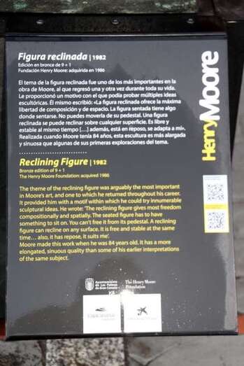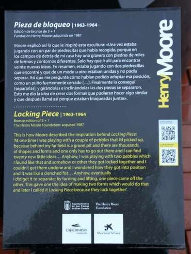 Muestra denominada Arte en la calle con el patrocinio de la Fundación CajaCanarias, la Obra Social La Caixa, el Ayuntamiento de Las Palmas de Gran Canaria y The Henry Moore Foundation, que ha cedido las piezas para esta exposición, pudiéndose visitar hasta el próximo domingo 26 de enero de 2014, en el espacio detrás del Auditorio Alfredo Kraus. Una atractiva y didáctica muestra que como actividad cultural nos lleva a conocer a uno de los escultores más importantes del siglo XX, obligando para la comprensión de esta obra la observación, la reflexión sobre la tridimensionalidad en sus formas y adaptaciones abstractas a veces incomprensibles para el resto de los mortales, resultado de la búsqueda desde el antropocentrismo hasta la representación de las formas naturales nacidas de su ingenio creativo. Muchas gracias.