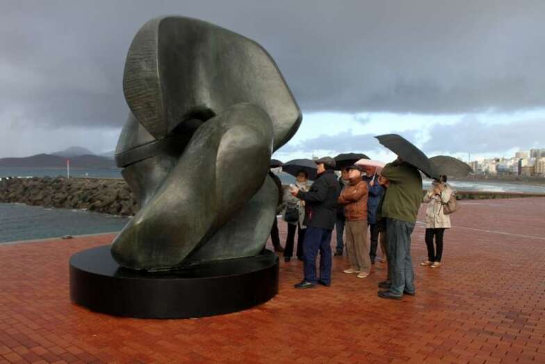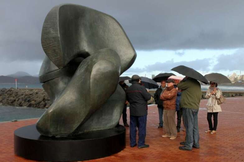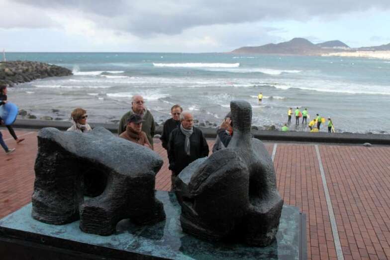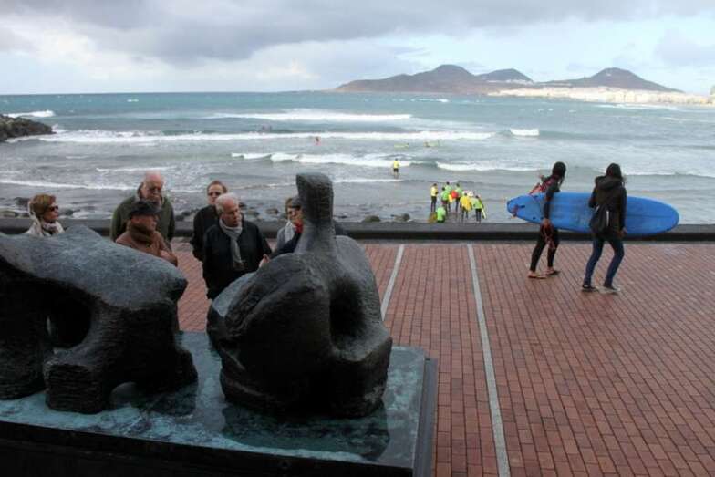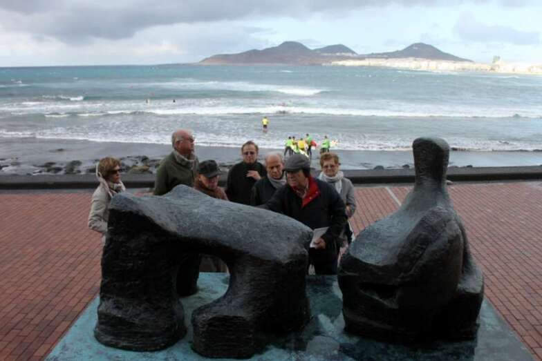 Telde.- Un grupo de teldenses visitó este jueves la exposición al aire libre del escultor británico Henry Moore en Las Canteras, en la capital grancanaria. El evento fue organizado por el Círculo Cultural de Telde y el guía de la iniciativa fue el artista Máximo Riol.