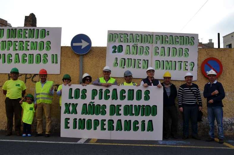 Como cada año, coincidiendo con el aniversario de la caída de una de sus pilastras, una decena de defensores del patrimonio canario e integrantes del colectivo ecologista Turcón se concentraron esta tarde frente al ingenio azucarero de Los Picachos, uno de los pocos que perduran en la Isla, para protestar contra el estado de abandono que sufre uno de los símbolos más emblemáticos del municipio.