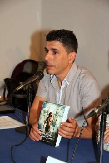 Eso sería el segundo privilegio que tiene este libro. Está escrito por Juan Gabriel Santiago Casañas, que había enfocado su vida a unos aspectos de actividades económica, y cuando decidió escribir el libro lo hizo desde el corazón de las ganas, desde la persona que sin haber estudiado historia, ha investigado y estudiado las fuentes donde beber para escribir esta obra. Un libro que habla de los primeros pobladores de nuestra isla. Está escrito des forma sencilla, clara y amena. Esta escrito desde el corazón con la convicción de que esas personas que moraron aquí y que dieron lugar a la canariedad, logra un acercamiento sincero a la cultura que he de pervivir entre todos.