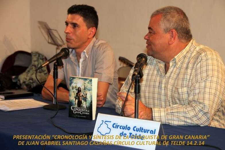 El pasado viernes 14 de febrero tuvo lugar en la sede del Círculo Cultural de Telde, la presentación de la obra Cronología y Síntesis de la Conquista de Gran Canaria, obra de Juan Gabriel Santiago Casañas, cuya introducción estuvo a cargo de Juan Carlos Saavedra. El acto se inicia con la participación de la A.F. Arnao que dirige Pino Monzón Padrón, que da la bienvenida al público, en presencia del Consejero de Cooperación Institucional y Solidaridad del Cabildo grancanario, D. Antonio Hernández Lobo, presidenta del Círculo Cultural Da. Lucana Falcón León, y al autor de la obra que a su vez es integrante de dicha agrupación folclórica, interpretan el tema canario Los cantos de mi tierra.