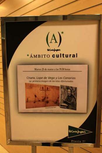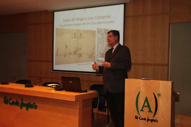La noche del pasado martes 25 de marzo el Cronista Oficial de Telde y Director de la Casa Museo León y Castillo, Presidente de Acamfe (Asociación de Casas Museos y Fundaciones de Escritores de España y Portugal) don Antonio María González Padrón, impartió en la Sala Ámbito Cultural de El Corte Inglés la conferencia Lope de Vega y Las Canarias la primera imagen de las Islas Afortunadas. Conferencia que fue presentada el pasado mes de diciembre de 2013 en la Casa Museo Lope de Vega de Madrid, y que forma parte de un ambicioso plan cultural iniciado por la Casa Museo León y Castillo, como Centro de Estudios de Historia Contemporánea en coordinación con este departamento cultural del afamado centro comercial.