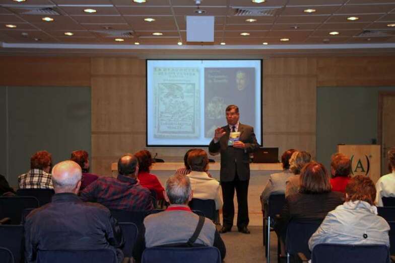 Interesante, documentada y didáctica ponencia impartida por D. Antonio María González Padrón, Cronista Oficial de Telde, para enlazar la idea del Fenix de los Ingenios con el conocimiento de las Isla Canarias y su imagen, en este caso desde la literatura del gran Lope de Vega, que cultivó casi todos los géneros vigentes en su tiempo, dentro de su numerosa obra literaria, desde la lírica con poemas de temática épica, mitológica o religiosa. Entre otras la prosa de novelas como La Arcadia, género pastoril, o La Dorotea, en la que narra sus frustrados amores juveniles. Donde más abunda su producción literaria es en las piezas teatrales. Comedias en el que el autor se revela más renovador. Temas en la que destaca la defensa de la honra, Peribáñez y el comendador de Ocaña, enredos como El perro del hortelano, o temas históricos y leyendas españolas, Fuenteovejuna. Muchas gracias.