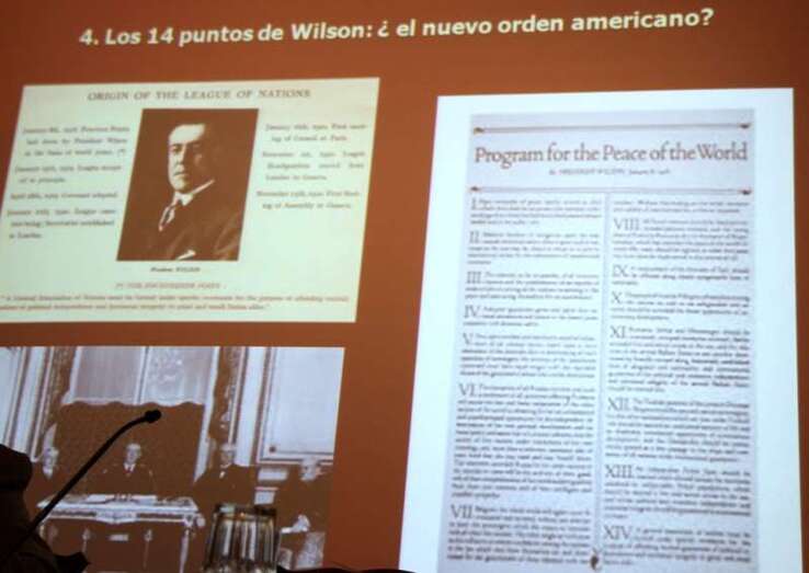 Y a partir de 1898 los norteamericanos van a extender su influencia, ya no solamente en América, con la doctrina Monroe, sino hacia Asia, y a su vez se dan cuenta de que el poder en este momento hay que tenerlo en el mar, donde los británicos, en este momento, tienen la hegemonía. Los norteamericanos empiezan a incrementar su flota naval para dejar patente la importancia que tiene a nivel económico y a nivel militar, asunto que influye en los 14 puntos del presidente Wilson.