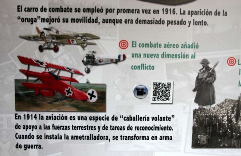 El visitante podrá completar la información utilizando las nuevas tecnologías por medio de la utilización de códigos Qr que permiten la visualización en los dispositivos móviles de recursos multimedia como vídeos y textos relacionados con los distintos aspectos del conflicto. La exposición exhibe una bala que fue hallada por Fernando de León y Castillo en el frente de Alsacia y que grabó con las iniciales de su nombre.