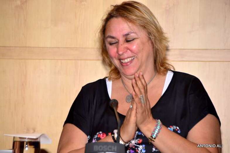 Telde.- La célebre escritora Megan Maxwell presentó este martes en la sala Ámbito Cultural de El Corte Inglés de la capital grancanaria su ú ltima novela Adivina quién soy. La autora firmó ejemplares. El salón de acto estaba lleno de seguidores, muchos de ellos de Telde, incluso habían muchos de pie.TA ofrece reportaje gráfico.